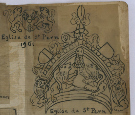 Les seigneurs qui faisaient au XI• siècle des fondations pieuses ne songeaient par là qu'à procurer à leur âme la vie éternelle en l'autre monde. Du même coup, sans y songer, Ils ont trouvé le moyen de perpétuer en ce monde-ci, autant que cela est donné à l'homme, leur nom et leur mémoire. Des faits et des écrits de cet âge lointain rien n'a surnagé que par les clercs et les églises, surtout par les monastères et par les moines. Et les moines avant pris un coin spécial pour préserver la mémoire des donations à eux faites ainsi que celle des donateurs, les familles issues de ceux-ci sont à peu près les seules qui puissent aujourd'hui reconnaître leurs auteurs dans cette haute antiquité. Encore faut-il y regarder de très près, ou l'on risque de s'égarer sur une fausse piste et de prendre, comme on dit, martre pour renard. Ainsi est-il advenu à un collaborateur de la nouvelle édition du Dictionnaire de Bretagne d'Ogée qui, à l'article Saint-Pern, a voulu indiquer l'origine de la vieille famille bretonne connue sous ce nom, bien souvent nommée dans notre histoire, illustrée, entre autres, par ce vaillant capitaine qui, de concert avec le Boiteux de Penhoët et Bertrand du Guesclin, dirigea la glorieuse résistance de Rennes contre le duc de Lancastre, en 1368-1357. C'est ce qui nous a décidé à publier les sept actes ci-dessous, d'ailleurs fort curieux, dont six du XI• siècle, un du XII, et tous, sauf un, inédits. Nous les tirons de la copie faite au XVII• siècle par les Bénédictins Bretons sur le Cartulaire de Saint-Nicolas d'Angers, et présentement conservée aux Manuscrits de la BIBLIOTHQUE Nationale, collection des Blancs-Manteaux, Malheureusement, pour plusieurs de ces pièces, cette copie n'est qu'un extrait, le transcripteur a remplacé par des etc. les clauses qu'il lui a plu de supprimer. Nous avons reproduit - ne pouvant faire mieux - ces etc., mais nous tenons à prévenir le lecteur que les suppressions ainsi indiquées ne sont point de notre fait et que nous imprimons exactement tout le texte donné par les Blancs-Manteaux. Nous avons même cru devoir rééditer un acte publié par dom Morice (n° VI ci-dessous), parce qu'il est Indispensable pour faire comprendre l'erreur commise par le collaborateur du Dictionnaire d'Ogée. Nous allons analyser les pièces publiées ci-dessous, dont les dates sont Justifiées dans les notes jointes à chacune d'elles. I. --Vers l'an 1050, un chevalier du nom de Quirmarhoc, et sa femme Rotrouce (Rotrucia) donnèrent à l'abbaye de saint Nicolas d'Angers l'église de Saint-Pern (ecclesiam Sancti Paterni) avec un grand terrain à l'entour clos par des fossés, et qui, bien qu'on ne lui donne pas ce nom explicitement, devait être un de ces cimetières de vaste étendue où, sous l'égide du droit d'asile, les vivants venaient souvent habiter et prendre un refuge contre les entreprises de la violence. La donation de Quirmarhoc comprenait de plus une terre considérable, de la contenance de deux charruées et demie, ce qui représente environ quarante-trois à quarante-cinq hectares. -- Peu de temps après, l'abbé de Saint-Nicolas, appelé Arraud, vint en Bretagne et passa les fêtes de Noël à Saint-Pern. Ce fut un événement pour le pays : Quirmarhoc, ses chevaliers (cum suis mililibus), sa famille, et la vicomtesse de Dol elle-même, mère de Rivallon, sire de Combour, se rendirent à Saint-Pern pour assister aux offices célébrés solennellement par ce prélat. Les deux premiers jours de cette grande fête furent donnés exclusivement à la piété. Le troisième, Quirmarhoc vint rendre visite à l'abbé logé au prieuré et, séduit par son aménité, il ajouta à sa première donation un trait de dîme, une place à bâtir moulin dans une roseraie, et la moitié du produit de ses propres pêcheries. - Cet acte est le plus ancien où il soit question de l'église de Saint-Pern, qui n'était encore qu'une trêve ou succursale de Plouasne (voir ci-dessous n° VII), située dans le diocèse d'Aleth (plus tard Saint-Malo), et qui est aujourd'hui une commune du canton de Bécherel, arrondissement de Montfort, département d'Ille et-Vilaine. II. (vers 1050). - Très peu de temps après, un prêtre et plusieurs laïques, possesseurs des dînes ecclésiastiques dépendantes de l'église de Saint-Pern, les donnèrent aux moines de Saint Nicolas charges du services de cette église. Les plus notables de ces donateurs sont Josselin de Dinan et son frère Rivallon, seigneur de Combour, dit Rivallon de Dol. III (1062 à 1080). - Quirmarhoc, fidèle jusqu'à la fin à l'esprit de sa fondation, s'était fait enterrer au prieuré de Saint-Pern, et avant de mourir il avait anathématisé quiconque prétendrait ôter aux moines de Saint -Nicolas les biens dont Il les avait dotés (voir n° I, vers la fin). Cet anathème n’empêcha pas l'un de ses fils, appelé Brient, de molester les moines au point de leur faire abandonner le prieuré de Saint-Pern. Mais, au bout de quelques années, Brient et son frère Ginguenoc ou Gingnenou (Guinguenocus) firent prier l'abbé de Saint-Nicolas d'Angers de leur envoyer de nouveau quelques-uns de ses religieux, auxquels ils promirent de rendre tous les biens attribués au prieuré. L'abbé Hamon vint lui-même à Saint-Pern à cette occasion, et l'acte constatant cette reprise de possession fut dressé en sa présence dans la maison de Guinguenou, avec l'assentiment de ses fils Guillaume, Hingant et Mainfinit. La rôle principal joué en cette circonstance par Guinguenou, doit le faire considérer comme l'ainé des deux fils de Quirmarhoc. IV (1080 à 1096). - On connaît mal la postérité de Brient, quoiqu'on puisse lui attribuer pour fils un personnage mentionné dans notre n° VI (voir ci-dessous l'analyse de cette pièce). Quant à Ginguenou, il eut au moins quatre fils, Guillaume, Hingant, Mainfinit, Auger, et une fille dite Origon, mariée à Odon fils de Judicaël. 
